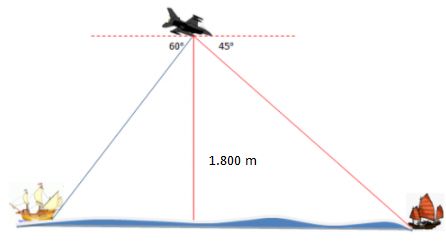 dengan ketinggian 1.800 meter, maka jarak kedua kapal tersebut