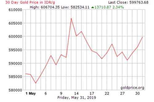 ini disajikan grafik harga emas ANTAM pada bulan Mei 2019